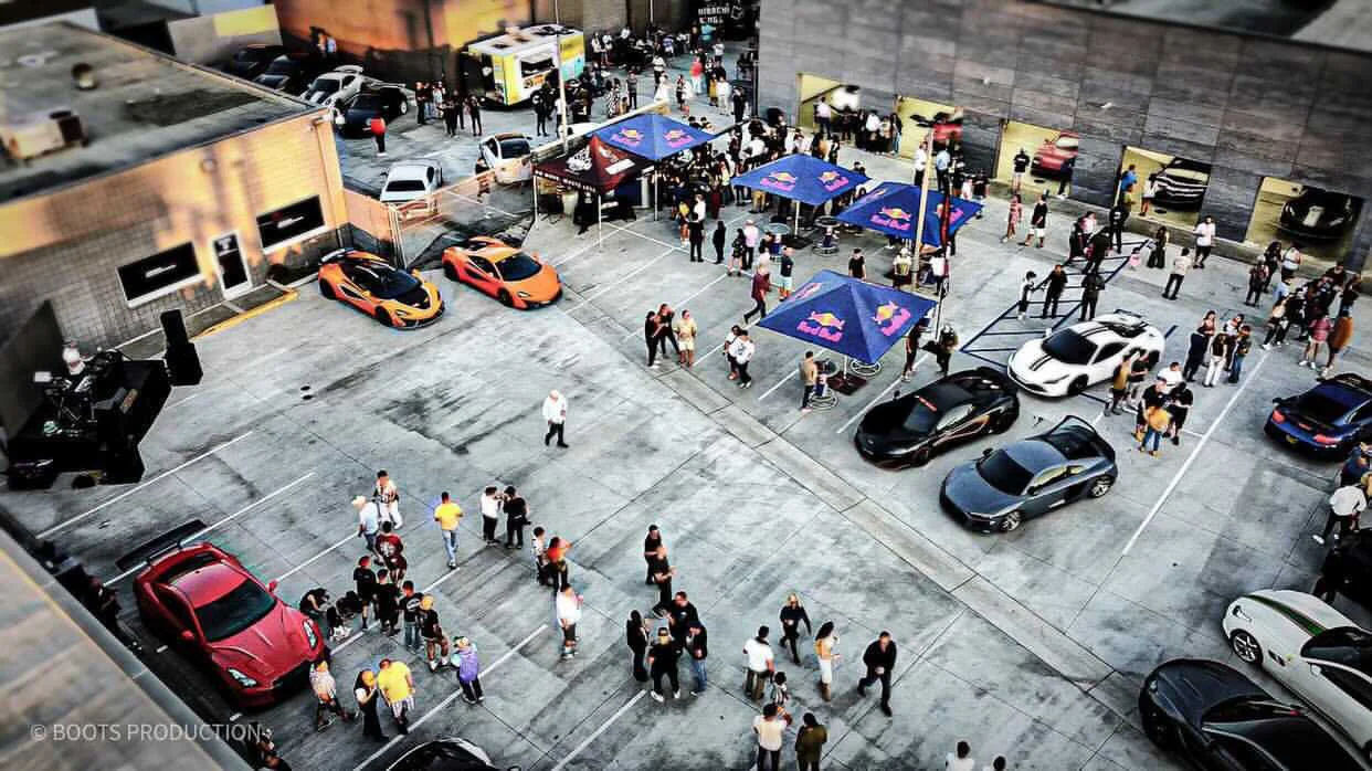 Drone shot of parking lot and front door at July 31st 2021 Grand Opening